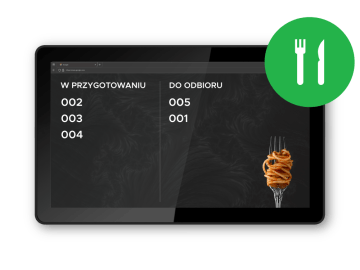 Klient, po opłaceniu zamówienia, otrzymuje numer. Ten sam numer wyświetla się na ekranie zainstalowanym w sali lub w ogródku. Gdy numer przeskakuje z kolumny „w przygotowaniu” do kolumny „do odbioru” wie, że może odebrać swoje zamówienie.