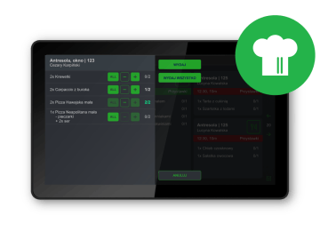 Czytelna, graficzna informacja usprawnia zarówno komunikację z kuchnią, jak i obsługę klientów. Każde danie znajdzie swojego właściciela na czas.