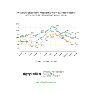 Analitycy Dotykačka — dostawcy niezawodnego systemu POS nowej generacji — ponownie przeanalizowali dane statystyczne firm z sektora HoReCa, aby sprawdzić, jak firmy działające w branży gastronomicznej odzyskują sprawność biznesową po trudnym okresie pandemii, jednocześnie funkcjonując w sytuacji wysokiej inflacji oraz pogarszającej się kondycji ekonomicznej.